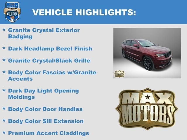 4WD, 19 Speakers High Performance Audio, 7 & 4 Pin Wiring Harness, 825 Watt Amplifier, Active Noise Control System, Adaptive Cruise Control w/Stop, Advanced Brake Assist, Anodized/Light Black Chrome Interior Accents, Black Roof Molding, Black Wood Instrument Panel & Door Spears, Body Color Door Handles, Body Color Exterior Mirrors, Body Color Fascias w/Granite Accents, Body Color Sill Extension, Bright Pedals, Class IV Receiver Hitch, Dark Day Light Opening Moldings, Dark Headlamp Bezel Finish, Dark Lens Taillamps, Dual Dark Chrome Exhaust Tip, Electronic Stability Control, Front Bucket Seats, Full Speed FWD Collision Warn Plus, GPS Antenna Input, GPS Navigation, Granite Crystal Exterior Accents, Granite Crystal Exterior Badging, Granite Crystal/Black Grille, HD Radio, Heated door mirrors, Heated front seats, Heated steering wheel, Heavy-Duty Engine Cooling, High intensity discharge headlights: Bi-Xenon, Illuminated entry, Lane Departure Warning Plus, Memory seat, Nappa Leather Trimmed Bucket Seats, Navigation System, Parallel & Perp Park Assist w/Stop, ParkView Rear Back-Up Camera, Power Liftgate, Power moonroof, Premium Accent Claddings, Premium LED Fog Lamps, Protech II, Quick Order Package 22S High Altitude, Rain Sensitive Windshield Wipers, Remote keyless entry, Steering wheel mounted audio controls, Trailer Tow Group IV, Turn signal indicator mirrors, USB Host Flip, Ventilated front seats, Wheels: 20 x 8.0 Low Gloss Granite Crystal.