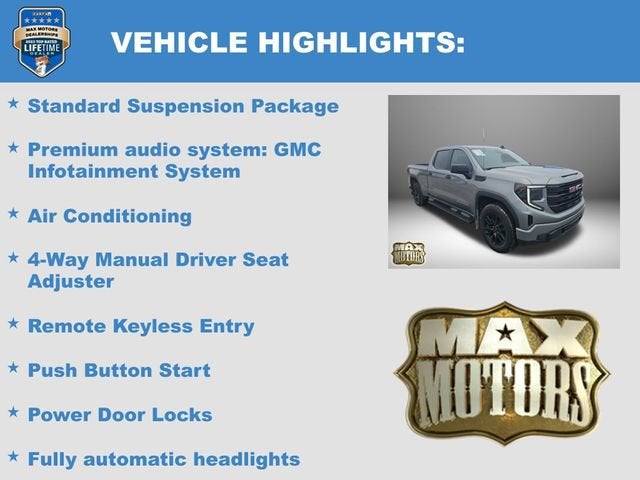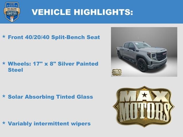 Recent Arrival!Clean CARFAX.Sterling Metallic 2023 GMC Sierra 1500 Pro4D Crew Cab Pro 4WD 2.7L I4 Turbocharged DOHC 16V LEV3-ULEV50 310hp18/20 City/Highway MPG8-Speed Automatic, 4WD, Jet Black Vinyl, 4-Way Manual Driver Seat Adjuster, 4-Way Manual Passenger Seat Adjuster, Air Conditioning, Following Distance Indicator, Forward Collision Alert, Front 40/20/40 Split-Bench Seat, Front Pedestrian Braking, Fully automatic headlights, HD Rear Vision Camera, Illuminated entry, IntelliBeam Automatic High Beam On/Off, Lane Keep Assist w/Lane Departure Warning, Power Door Locks, Premium audio system: GMC Infotainment System, Push Button Start, Remote Keyless Entry, Solar Absorbing Tinted Glass, Standard Suspension Package, Variably intermittent wipers, Wheels: 17 x 8 Silver Painted Steel.Odometer is 5536 miles below market average!At Max Motors, our mission is simple: to provide every customer with a honest, transparent, and rewarding automotive experience. For 19 years as a family-owned business, we build strong customer relationships that go beyond a sale. Buying a vehicle is significant, and we ensure the process is smooth and straightforward.